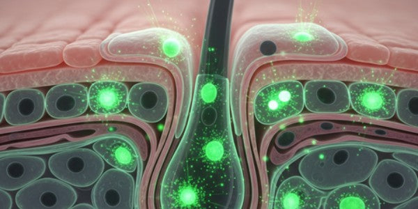 Ellaidil® switches keratin-building enzymes back on inside aging follicles by restoring carboxylase activity in keratinocytes.