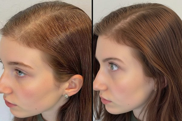 You can expect less daily shedding, stronger strands, and visible baby hairs filling in thinning areas. Over time, your hair will look thicker, shinier, and healthier. Many women also notice clearer skin and stronger nails.